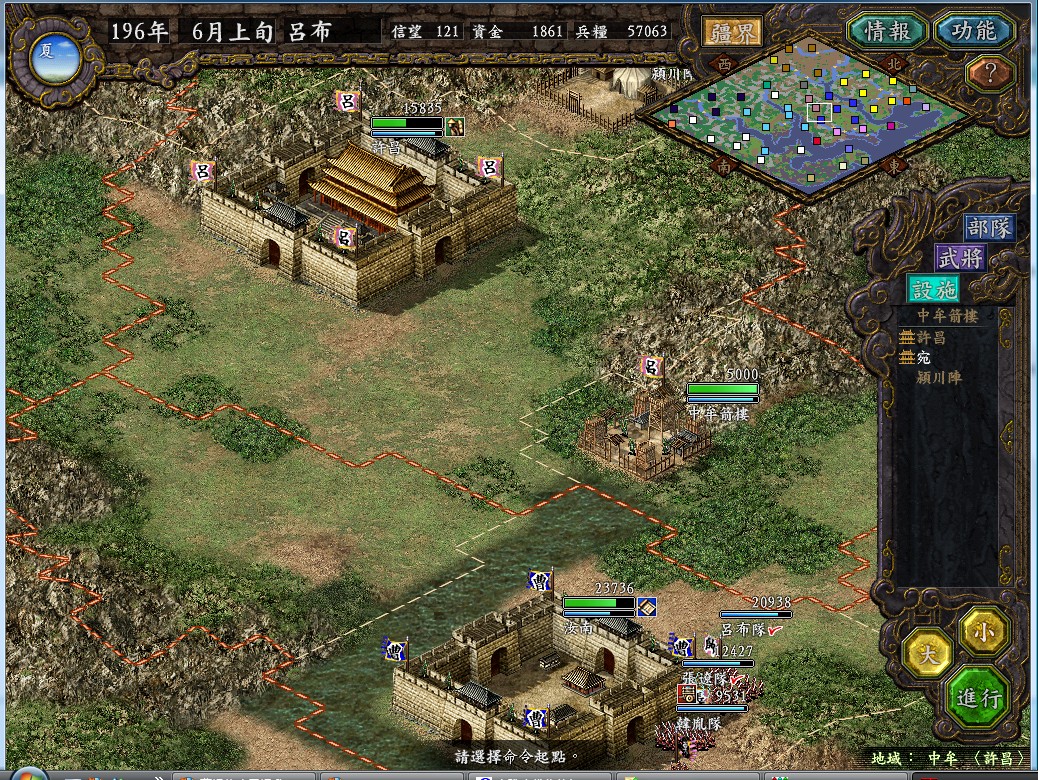 ----------------开始新游戏,官方史实剧本194 吕温候豪取兖州,势力吕布,开优化补丁,+50%强度,不S/L-------------------