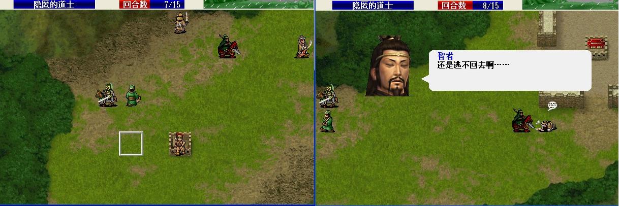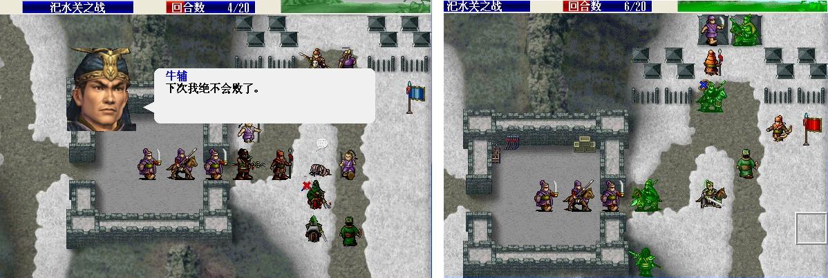 第4回合最大移动后山岚,友军移动后张飞主动对话刘备。第5回合刘备下移,如果第3回合霸气,有较高几率躲过小兵的攻击。第6回合,平移烈火过关。只触发了一个对话,评价B。