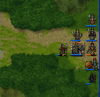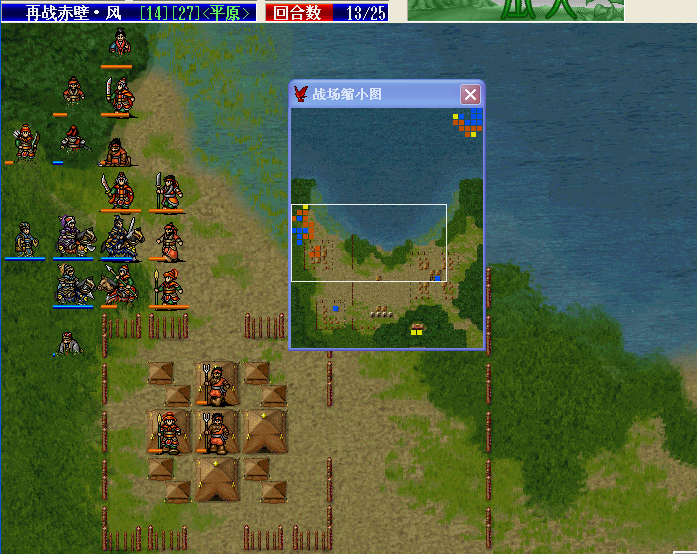 上路于禁尽量远走,因为这回合敌军输出太猛,等这回合之后反击一番弓兵降了敏压力就小点了,顺手射一个贼兵,禁魔一个是一个。其他人布好阵,留一个缺口,可以吸引来一个弓兵。见下回合开始图。