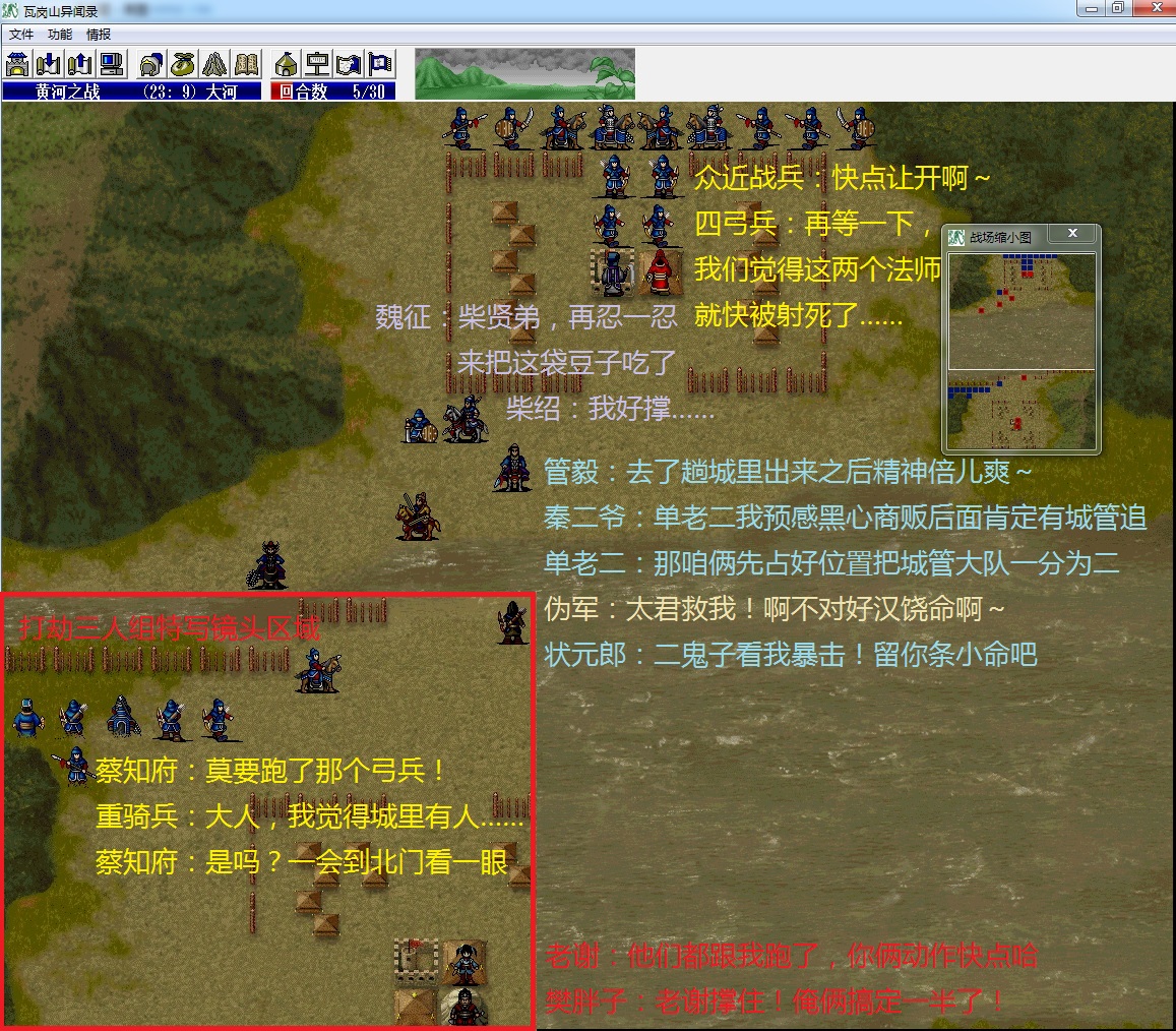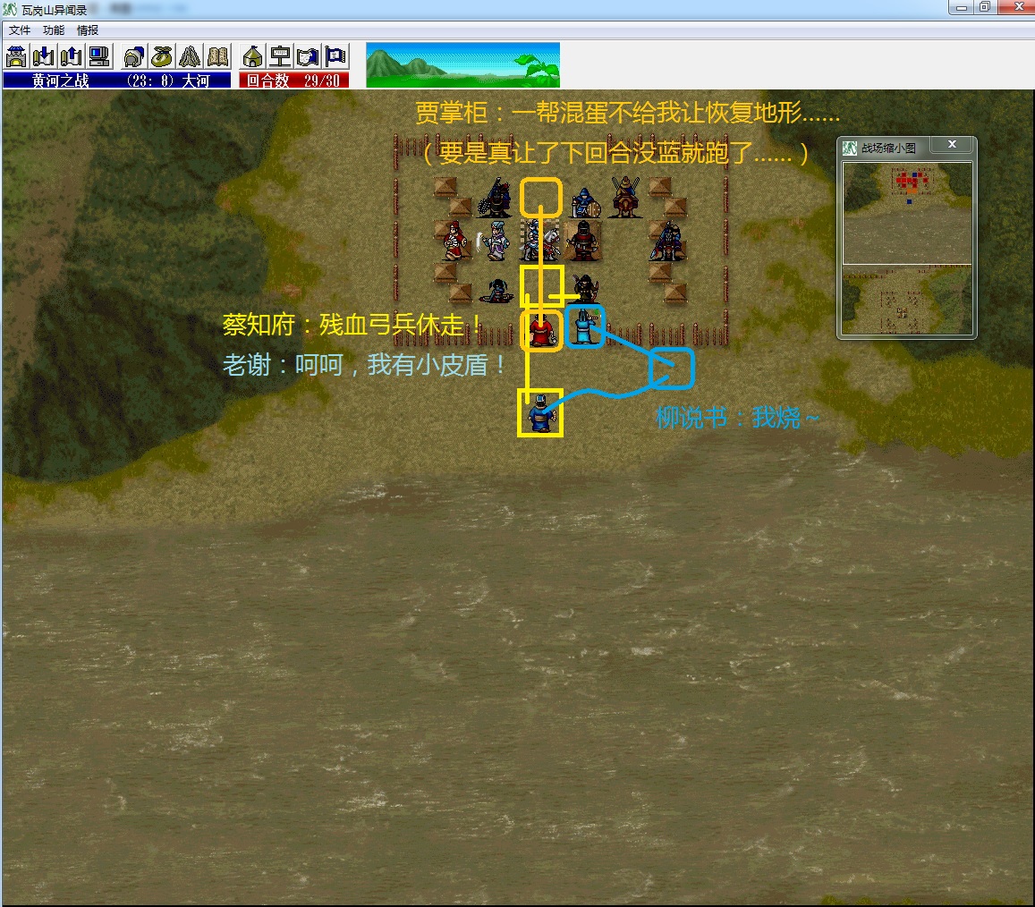(2)谢映登把左侧所有四向兵种全部勾引到左边山上去;