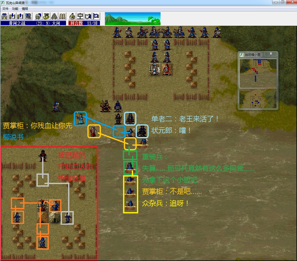 17回合开始见附图,同种颜色代表这些人的目标是同一目标。
