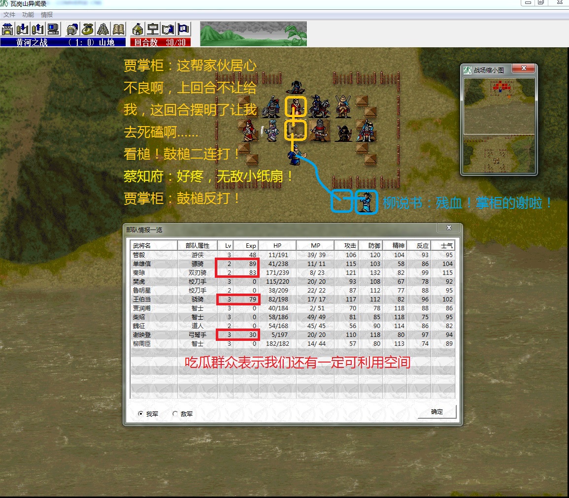 战前选择的求助李密,所以隔壁老王不在(求助李渊可能更好一些,王伯当比较扛揍,而且齐国远去了右上角之后吃个精壮果不管混不混乱肯定是不会死的)。