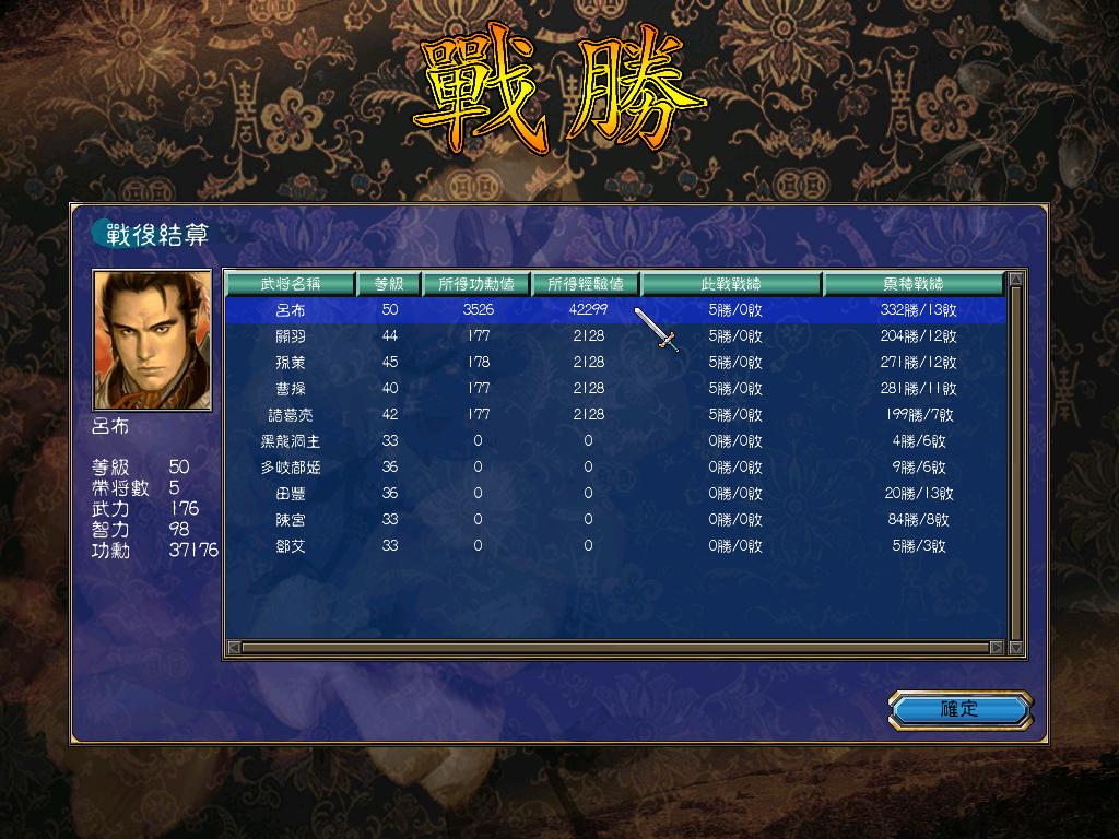 话不多说,把我的成绩上传上来,最好的一次,吕布刚刚转成文官,急需大量功勋,因此狂打了几个大仗,40000多经验的我就不上传了,传个60000多的上来,让大家看看。