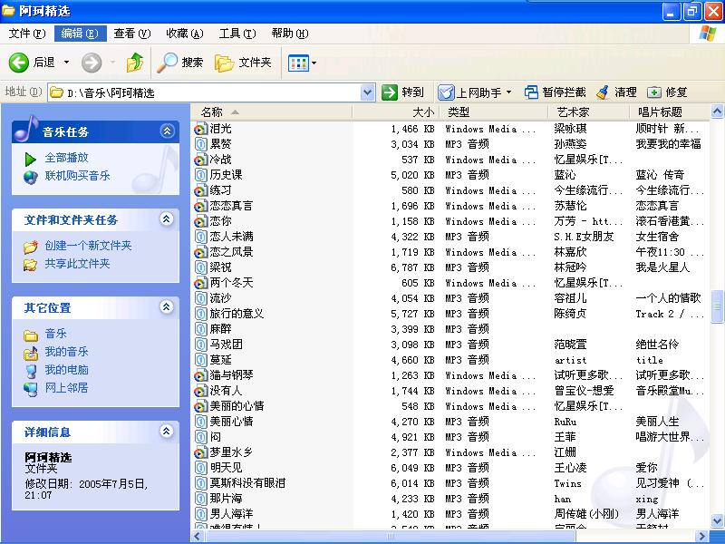 最近看见有许多推荐mp3中不可或缺的歌曲之类的帖子,心中痒痒。不免将最喜欢的三百首歌推荐给大家,以博一笑。
