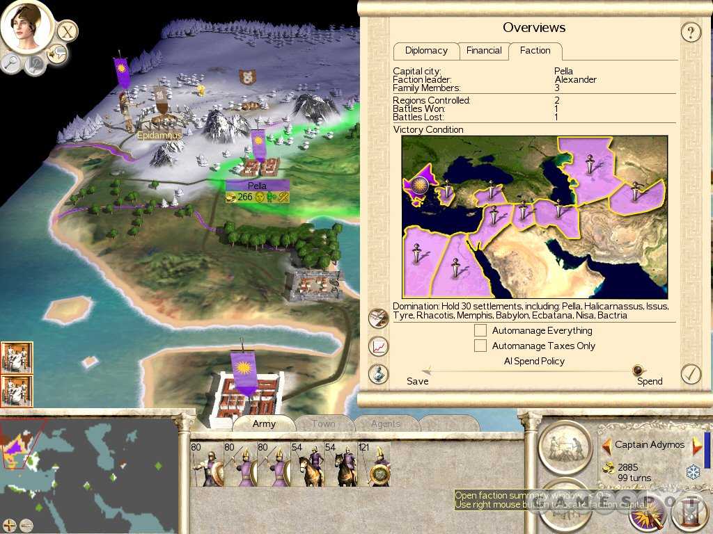 《罗马:全面战争 亚历山大》的上市日期将在6月份,据说这次的一个特色是亚历山大一旦在战场上挂掉则游戏结束.......