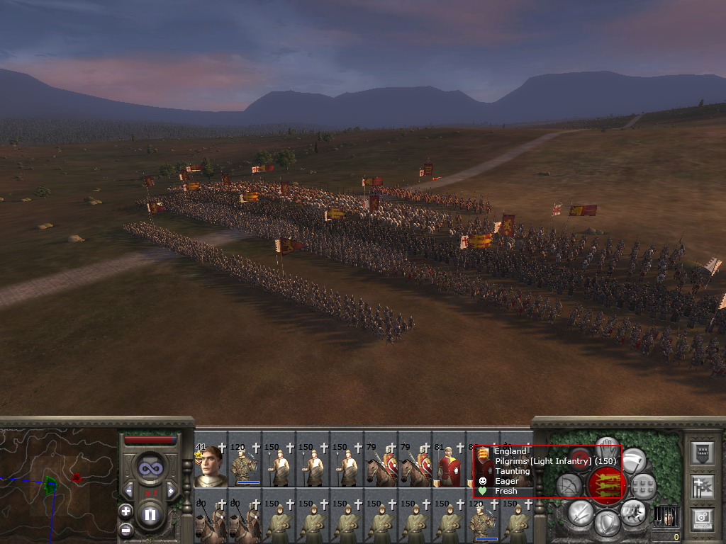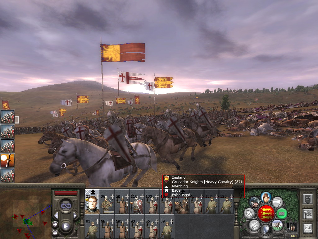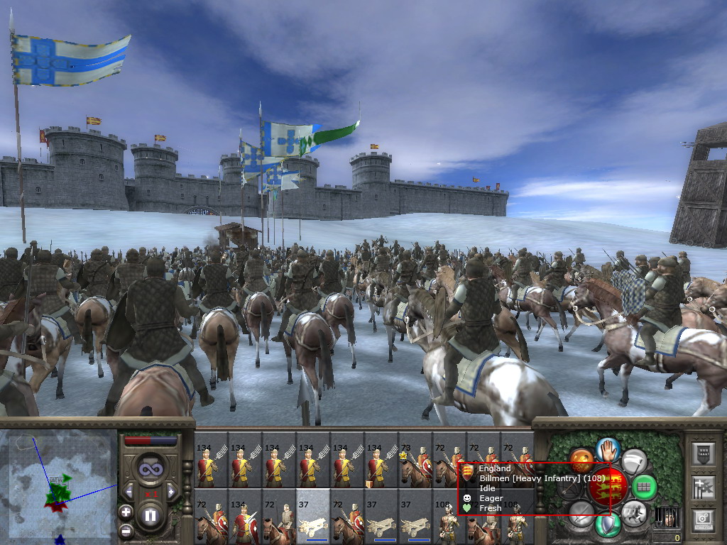 雷达地图上还是可以看出一些列阵和行军的内容的。因为欧洲多数国家不但兵种类似,且战法也差不多,所以不是很好看。与蒙古人作战就是两种不同理念、不同作战方式、不同军事配备、不同纪律素养的军队之间的战斗了(当然后期还有铁木尔)。所以以后发第二章《抗击蒙古入侵》时会尽量多几个阵形鸟瞰。遇有大战会把各个作战阶段截几张下来。