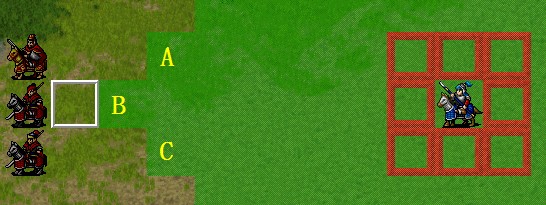 是主动出击,我军除了两个弓骑无反击之外,其他状态无差别,敌军会移动到哪个位置呢?