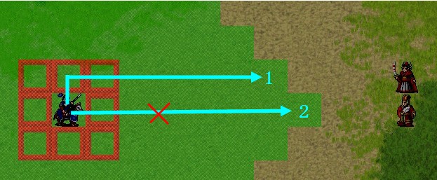 下图我军两个人在AI的攻击区域外,AI是连弩兵。