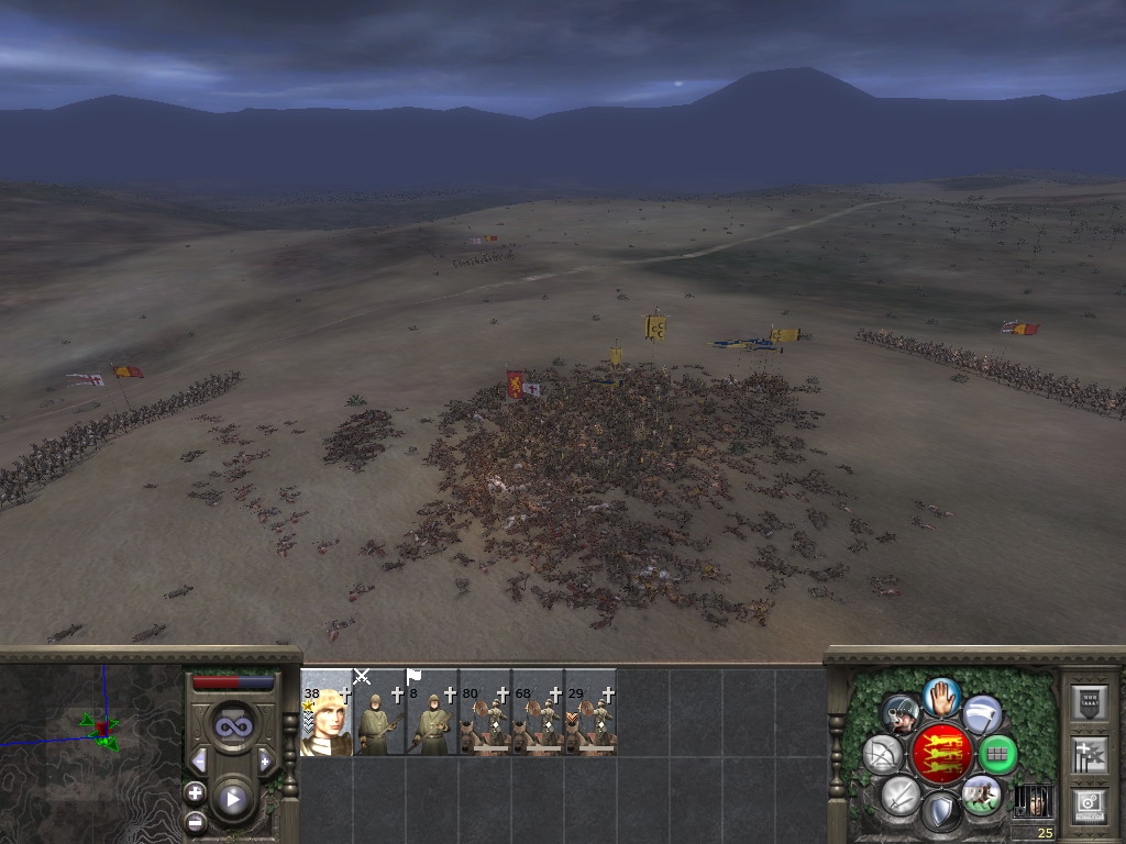 至于兵嘛,这种烂兵是不可能练成精兵的。初期手头十分拮据,而那种身无片甲的教徒一队有150人,却廉价到征募只需35块,穷的时候我不得不选这类士兵作战……