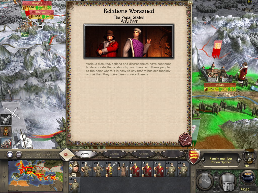 至于兵嘛,这种烂兵是不可能练成精兵的。初期手头十分拮据,而那种身无片甲的教徒一队有150人,却廉价到征募只需35块,穷的时候我不得不选这类士兵作战……