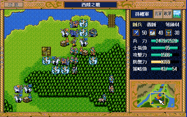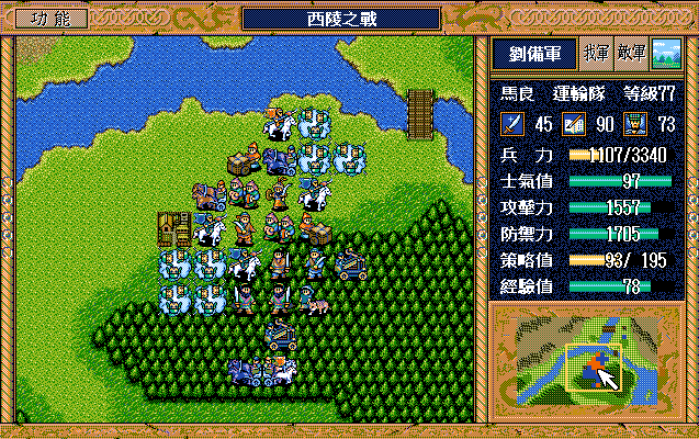 第24回合后:孙桓援助的差不多了刘备把骑兵混乱,放孙桓下来攻击马良,刘备绕过去准备卡位,沙摩柯在合适的时候灭掉上方步兵,让孙桓到这个位置,这样才能大策略吃主将。运输队醒来后大救济,然后到村庄左侧补给骑兵,糜芳混乱之,不能让他进村,否则后面没法利用村庄给骑兵补血了。魏延左侧骑兵血量不足时进村挑拨糜芳,左下骑兵醒来上移攻击魏延,运输队左下攻击魏延重新成阵,然后糜芳混乱村中骑兵,刘备攻击严畯并卡位,严畯醒来开始援助魏延下方骑兵。后面主要就是sl敌军的援助对象,敌军两个贼兵的策略真讨厌,中间用过若干次策略,否则还能多反击几下,体力是足够的,最后只能反击死猛兽和武术家,两个贼兵体力基本满的。