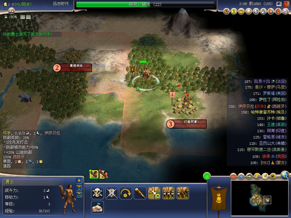 由于塞维利亚是山城,打了不核算,于是饶到巴塞罗娜,这个是平原城,2个小弓守,随着3个小弓的自杀性攻击后,2大棒终于拿下了此城