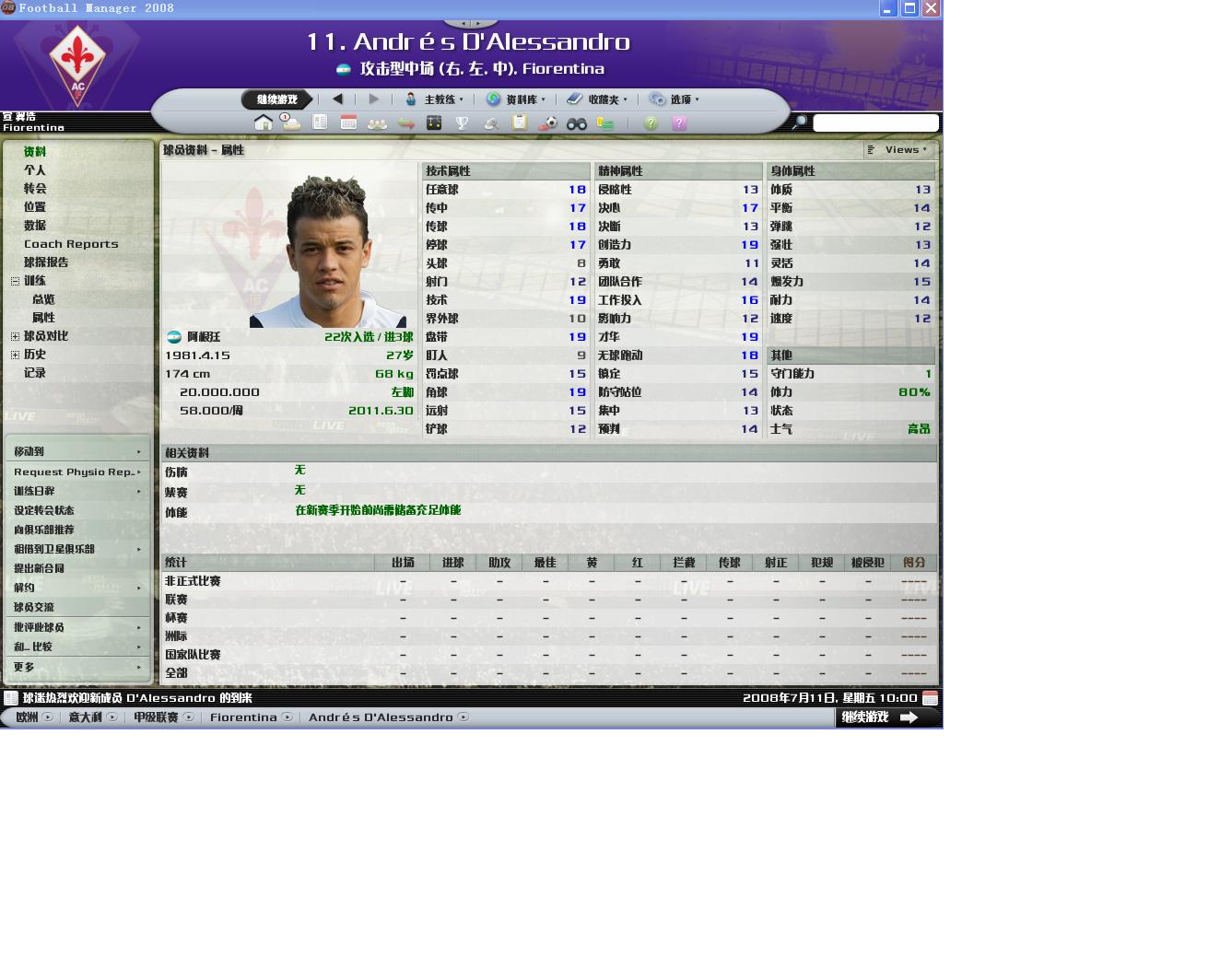 还有一个,Cacia,即将在1月份加盟的前锋,顺带也提一下。与Mutu相比能力和潜力都差了一点,只能打打替补了。