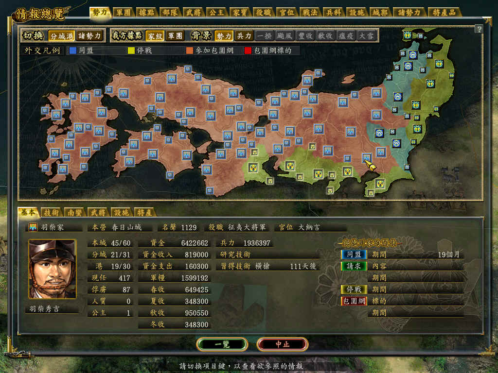 第二件事,同盟德川,很幸运,同盟了,我不需要再担心后方了。然后交换技术。