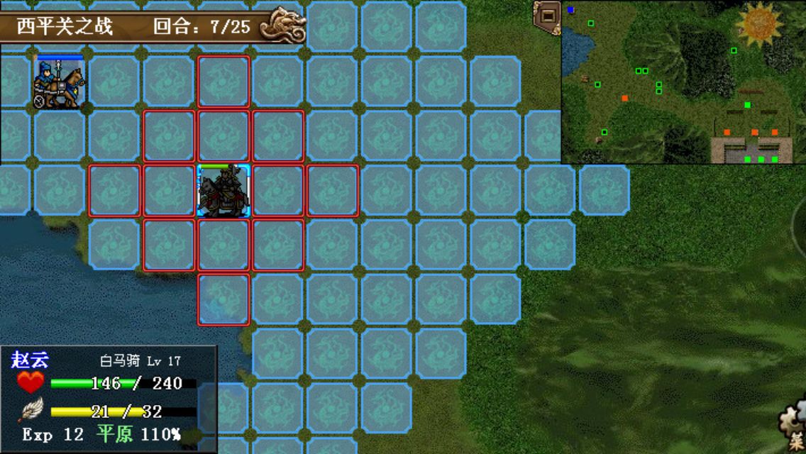 比较简单一关,赵云吃个武力果,二次移动进入森林。