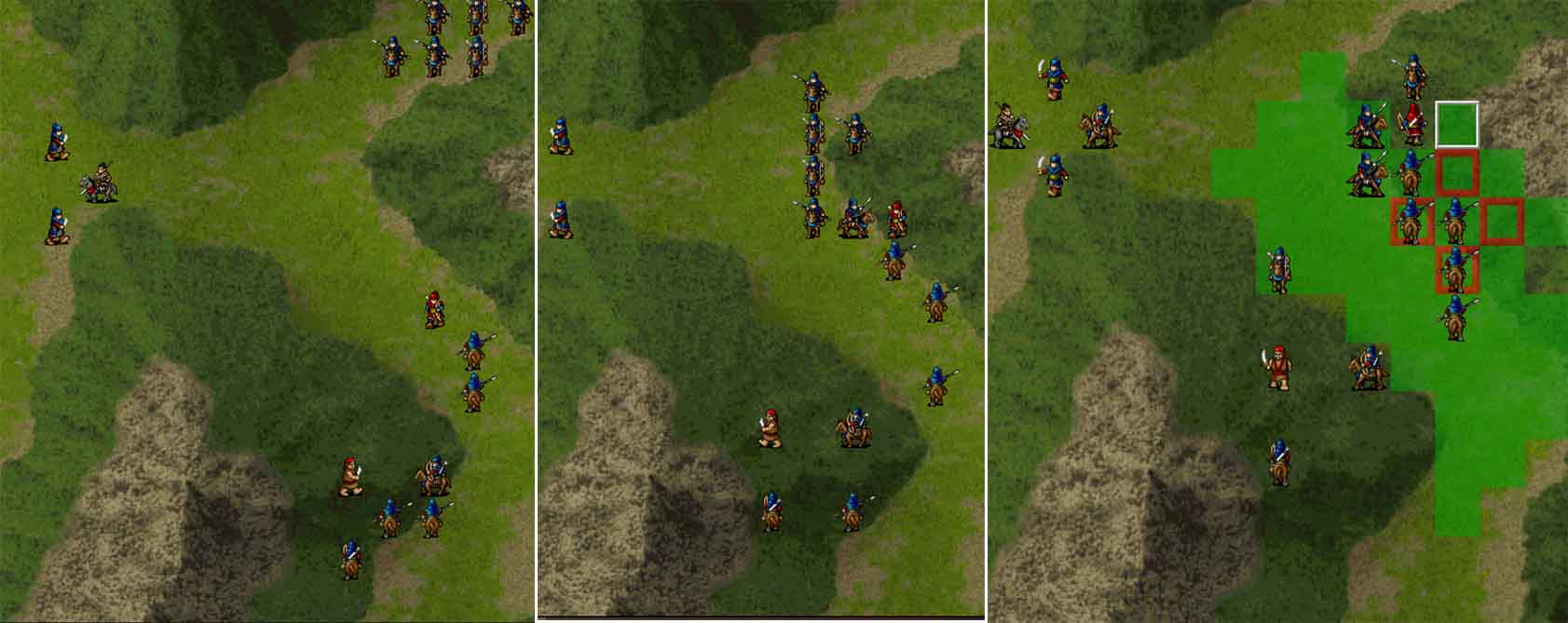 第三回合曹仁快速向左撤退,跟着程二德子、废物曹洪去抢西门鹿寨,白地将军拉两个骑兵过荒地。