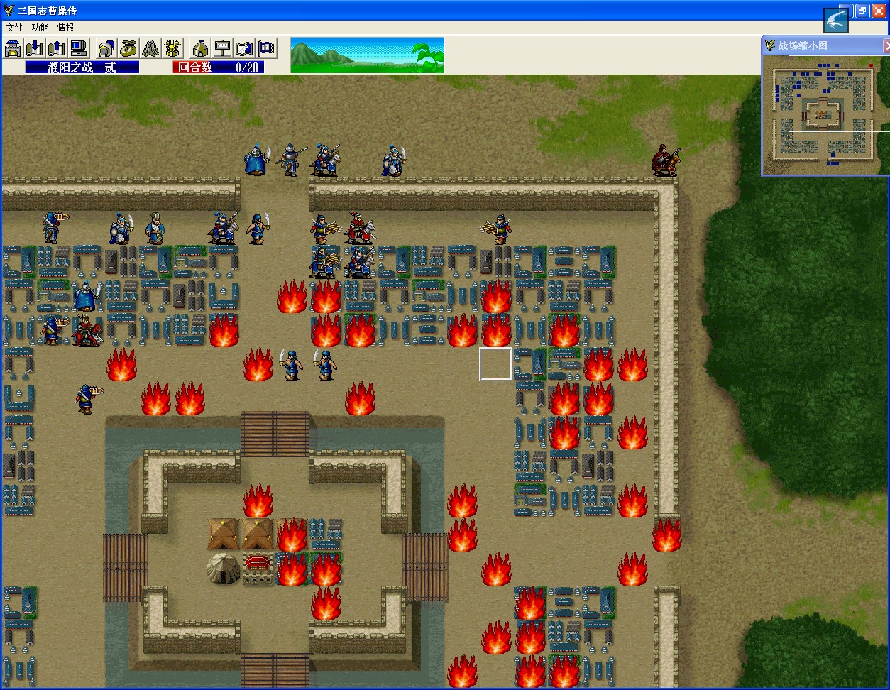 第六回合:曹操进两步兵空隙中,两军师可以烧着玩玩