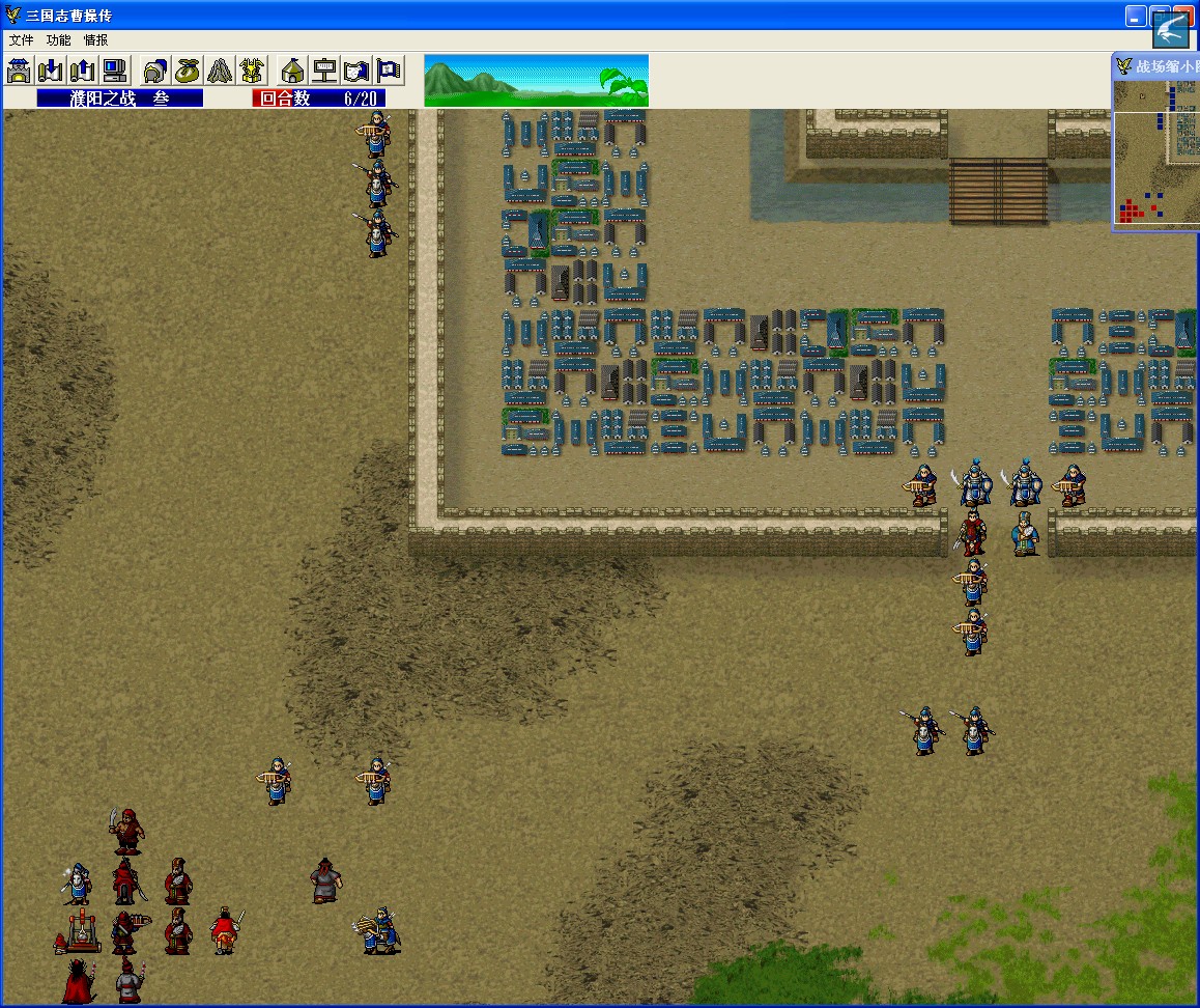 第五回合:荀攸被击退,曹操小补给自己,典韦钝兵门口3小兵,右路灭掉挡道贼兵,两军师向右走