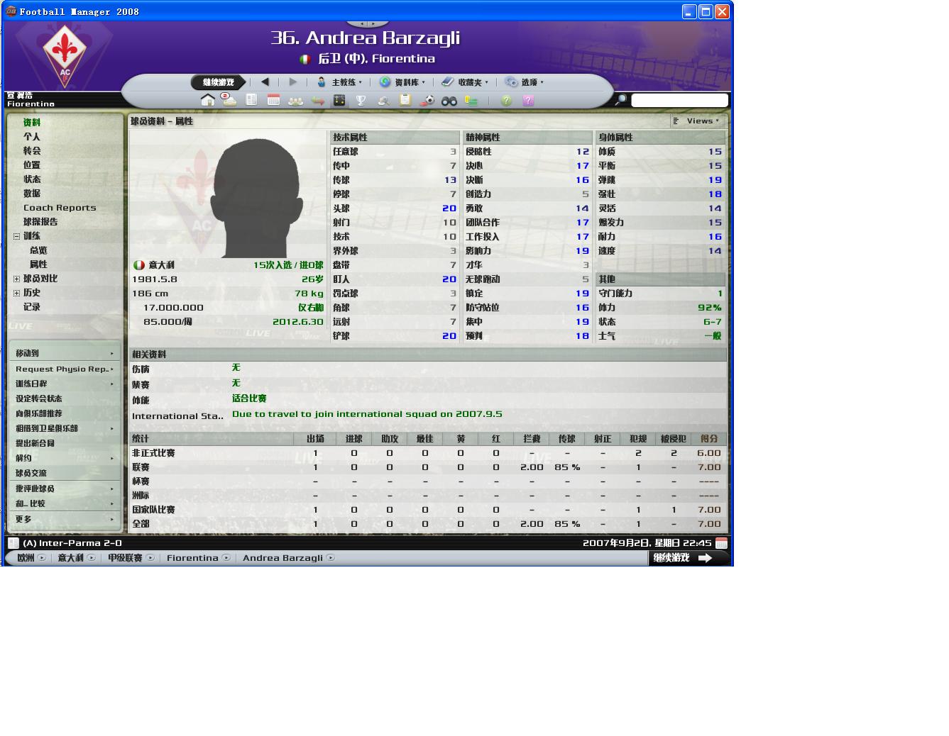 还有一个,Cacia,即将在1月份加盟的前锋,顺带也提一下。与Mutu相比能力和潜力都差了一点,只能打打替补了。