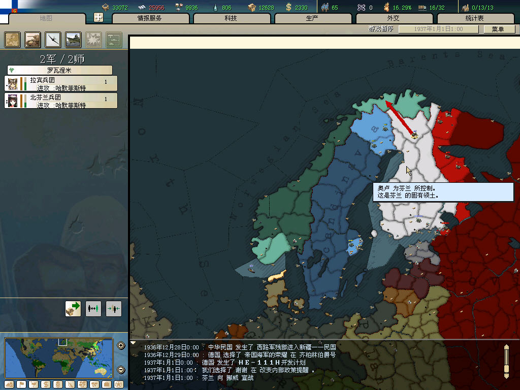 本想在战前让步兵能有新式大炮拉.........事后证明这个科技路线很失败(应该继续研究工业类.战转都更好)