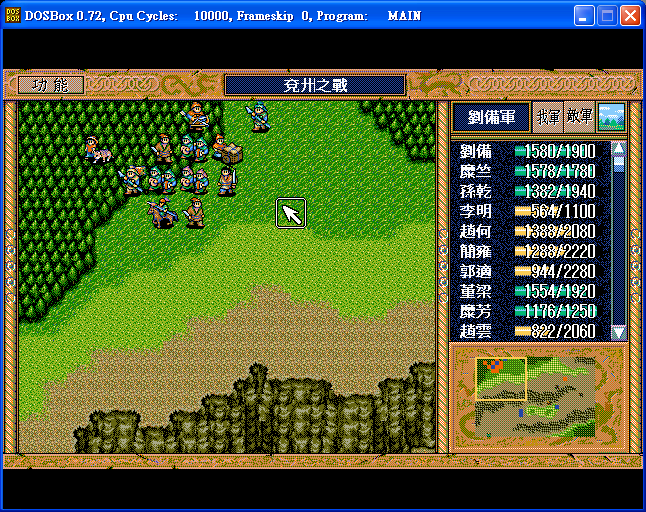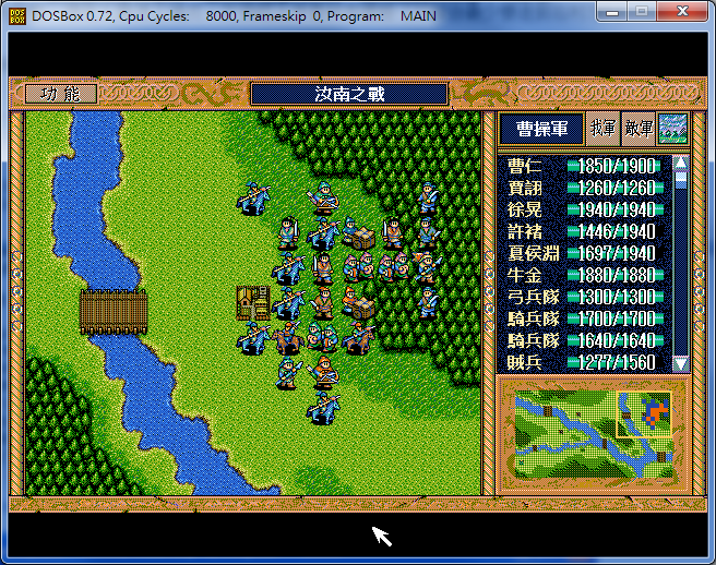 全滅3重騎後,27回合開始包圍曹操讓趙何領雙薪,之後為調出反擊趙何劉備退回森林讓董梁多反擊1次 (當時沒想到趙何可用焦熱書,且未引荀攸左移)