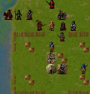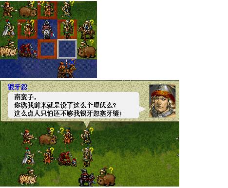 下回合待女经过道士放毒和禁军,剩下50~60左右的血,可以由黑风高击退;两友军骑兵都被敌军击退.王佐最大范围降士气,王贵顶在折旁边暴击骑兵,由友军击退,施全给王贵加防,牛吸引连弩的攻击,注意不可以让梁红玉把连弩打残,因为残兵先行动的原理会令局面失控.s/l折彦质反击骑兵暴击. (8)