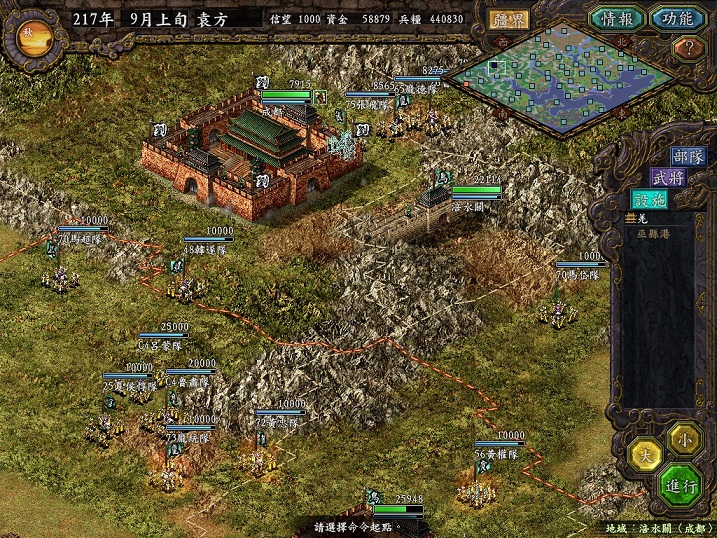 在孙匡北军被袁军围剿之时,身为联盟盟主的刘备也主动出击,频频进攻洛阳地区。可惜AI不高,电脑猛攻的方向我没有驻军的孟津港