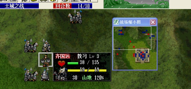 3、喂管毅勇壮果,管毅杀骑兵。鲁和魏杀刀兵。王进鹿砦吃勇壮果引出伏兵。保持防御增加状态,保持王混乱状态。