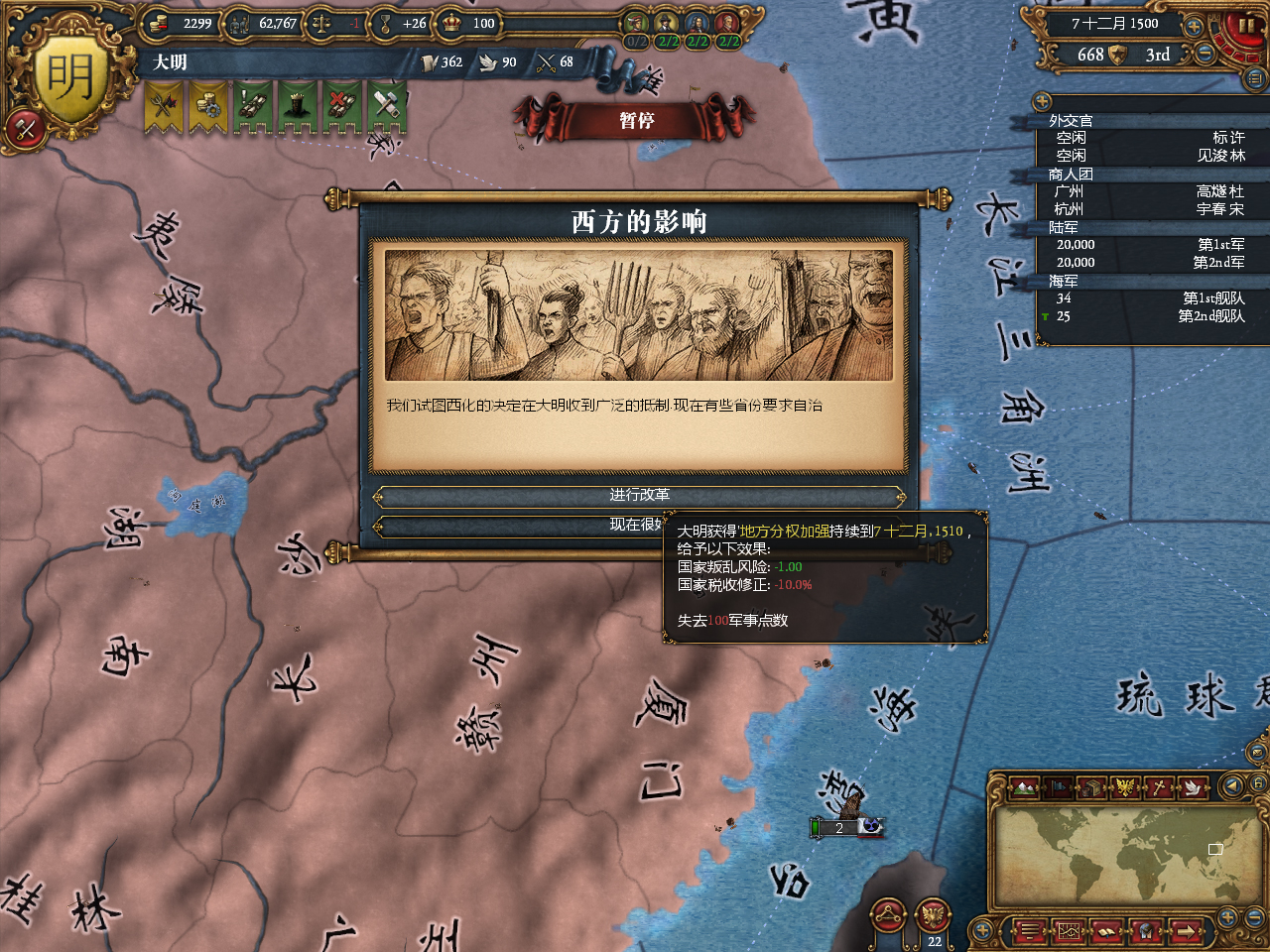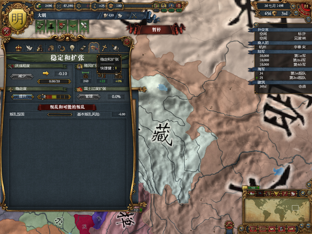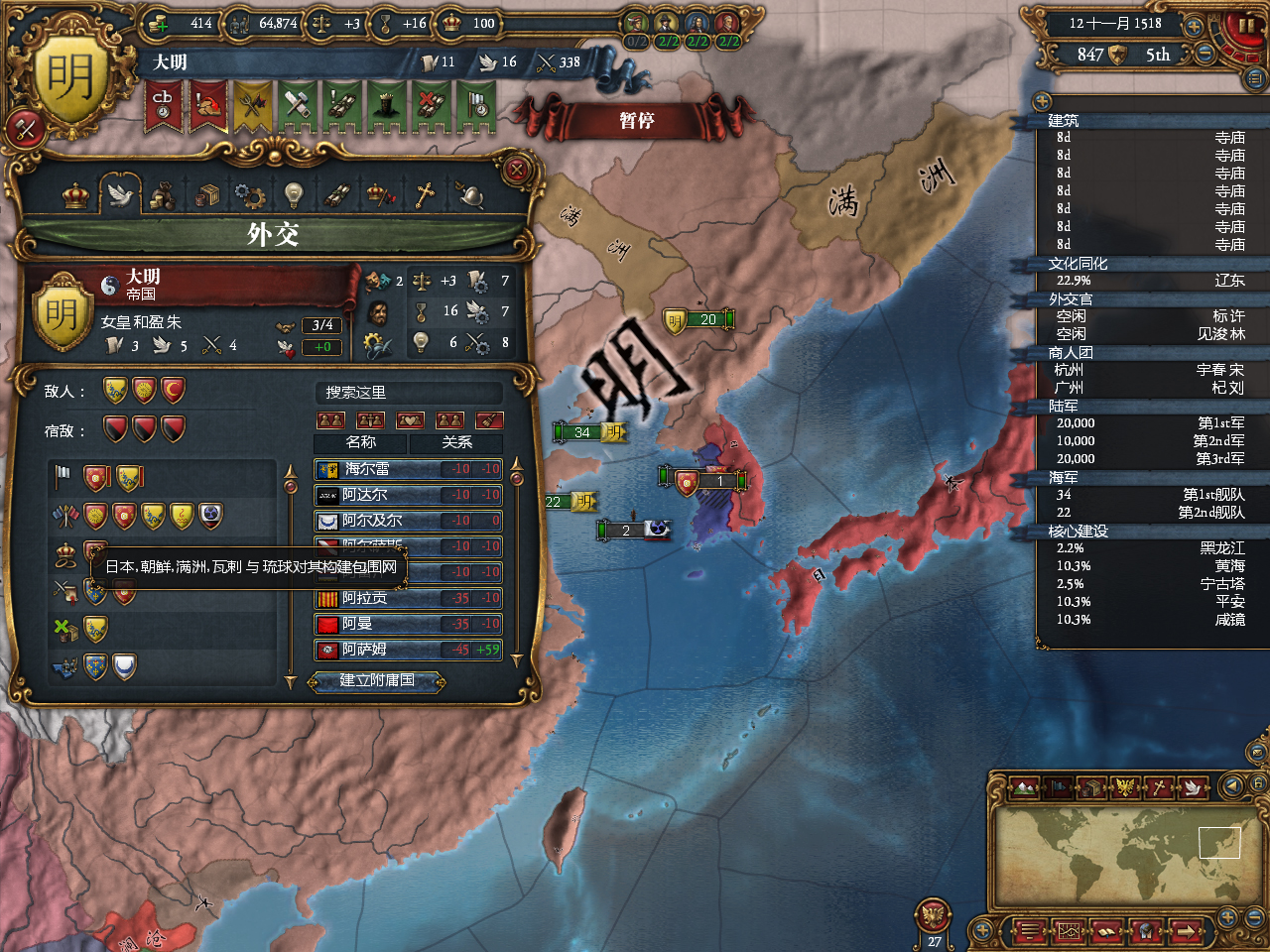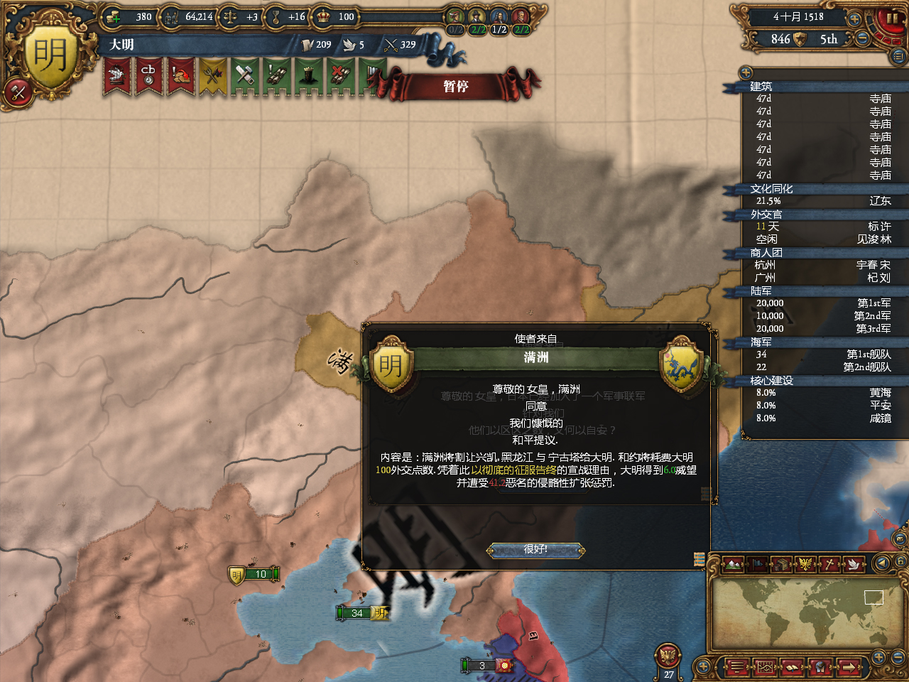 消化造核心 一边派殖民者在南洋占地 北方放个殖民者一路向西伯利亚殖民