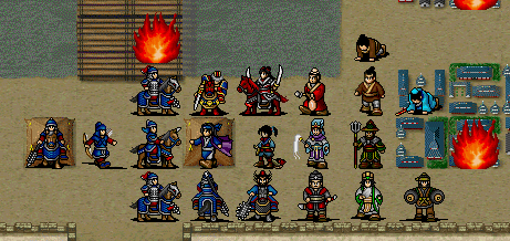 谢映登走到这个位置堵住轻骑兵,然后与管毅合力把统军打残,由雄阔海击退。接下来秦琼会反击打死重骑兵,但如果王伯当反击打死就会升级,还是秦琼来吧。没让管毅去扛,是因为宇文成都跟管毅对话后会加攻加防,击退他将成为不可完成的任务。