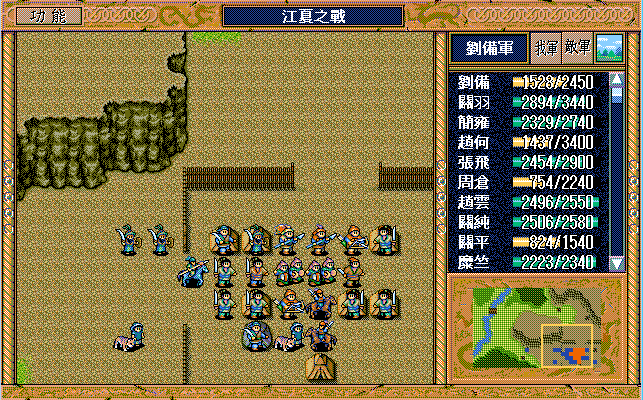 刘备(长枪、2焦热书);简雍,关纯(连弩),关羽,张飞,孙乾(焦热书),赵何(漩涡书),李明(8焦热书),糜竺(浊流书、7焦热书)