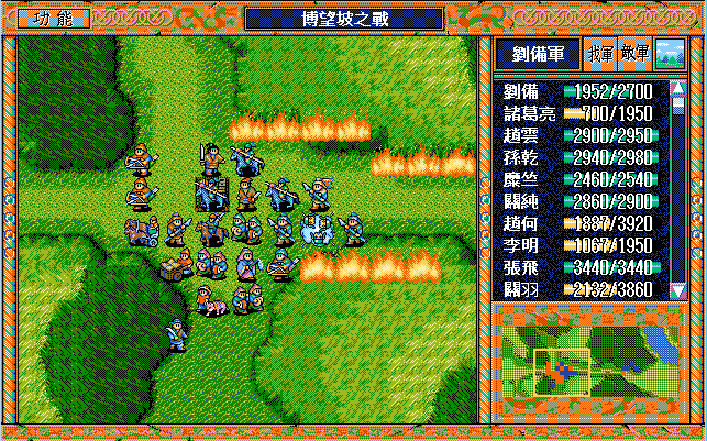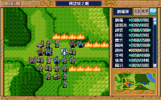 刘备:策略3回合24点,攻击8次、焦热3次、火龙1次56点(6X4+4X8),过关50点,共130点(行动15回合+变兵种1回合+交书2回合);