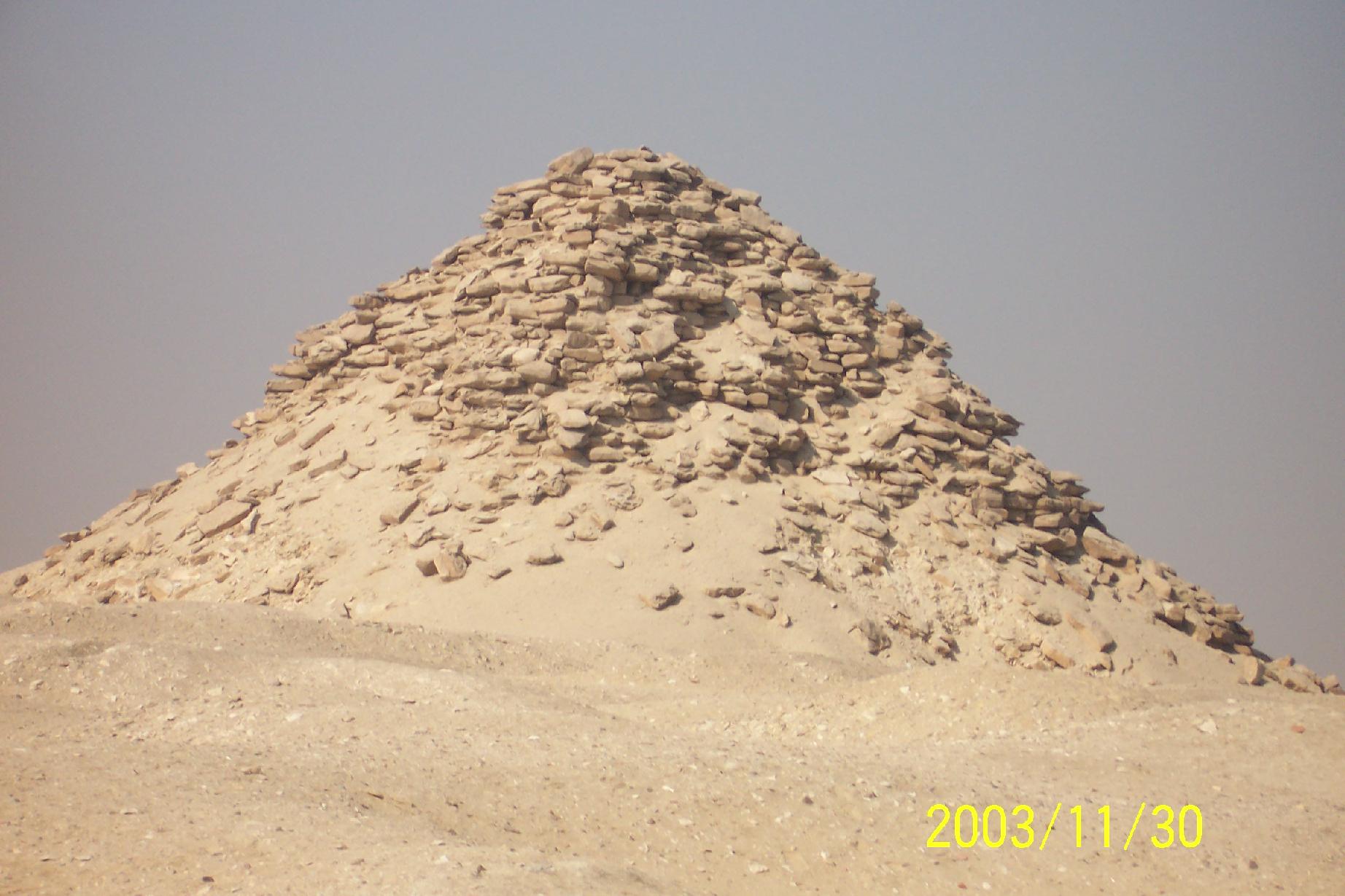 曼考拉(哈夫拉之子)金字塔,仅65.5米高,制作粗糙,和第四王朝的衰落一脉相承。