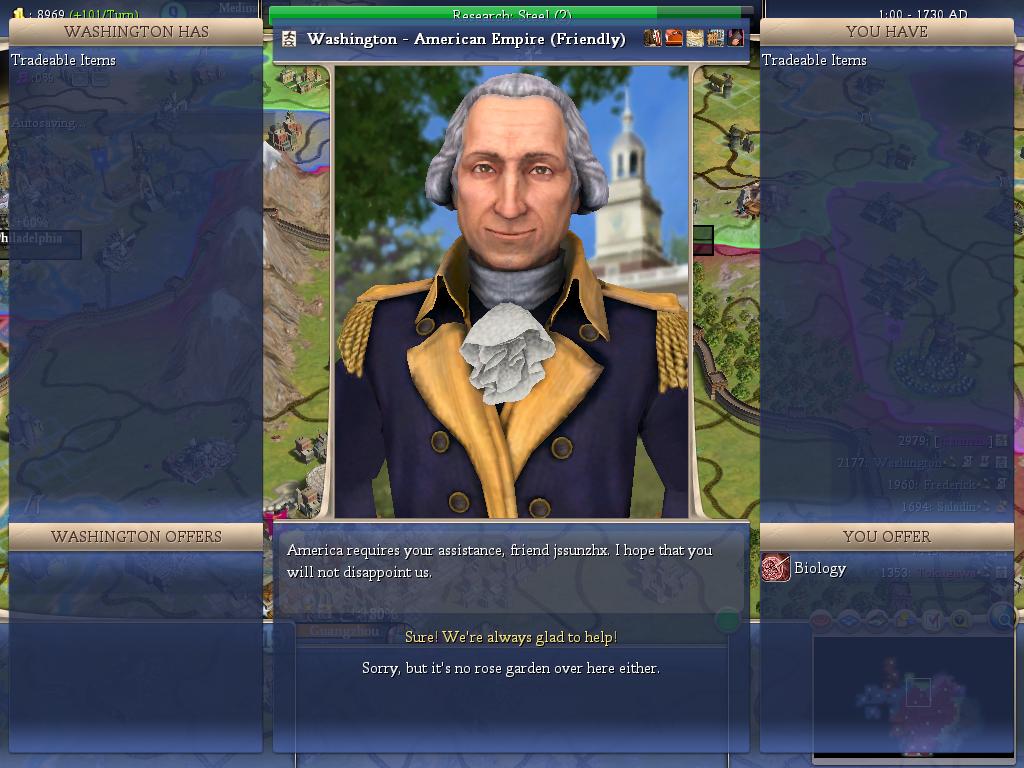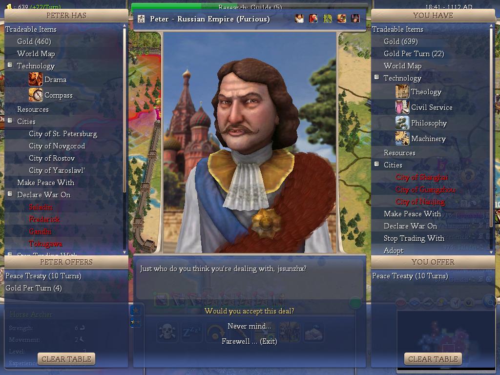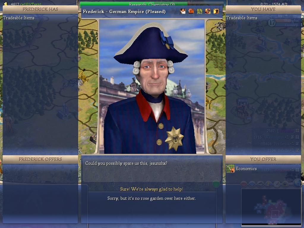 有个frindly的盟友就是好,研究出新科技第一时间跑来交易,省自己不少力啊