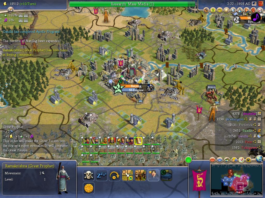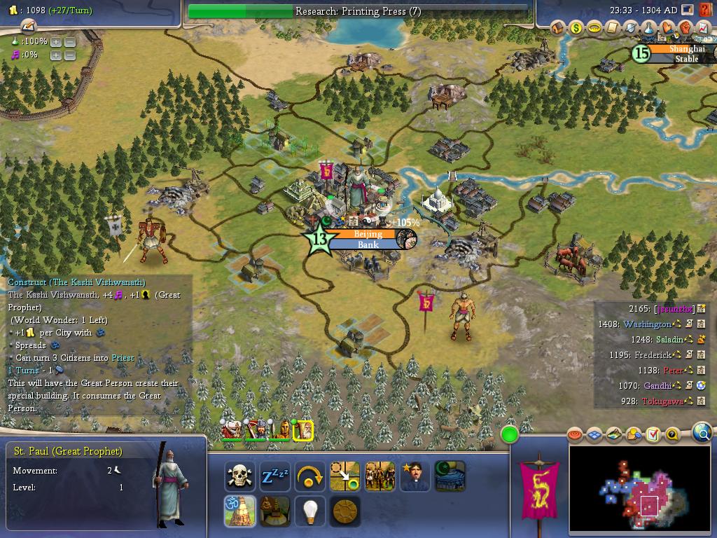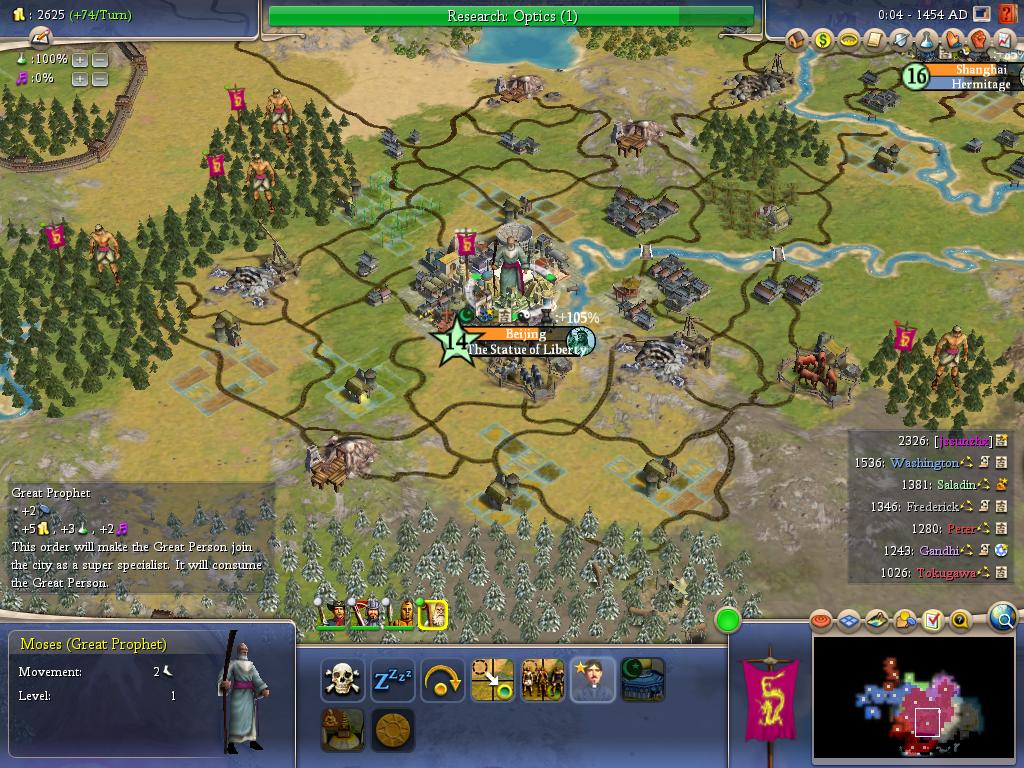 第14位伟人,又是先知,没什么可做的事了,只能加入城市: