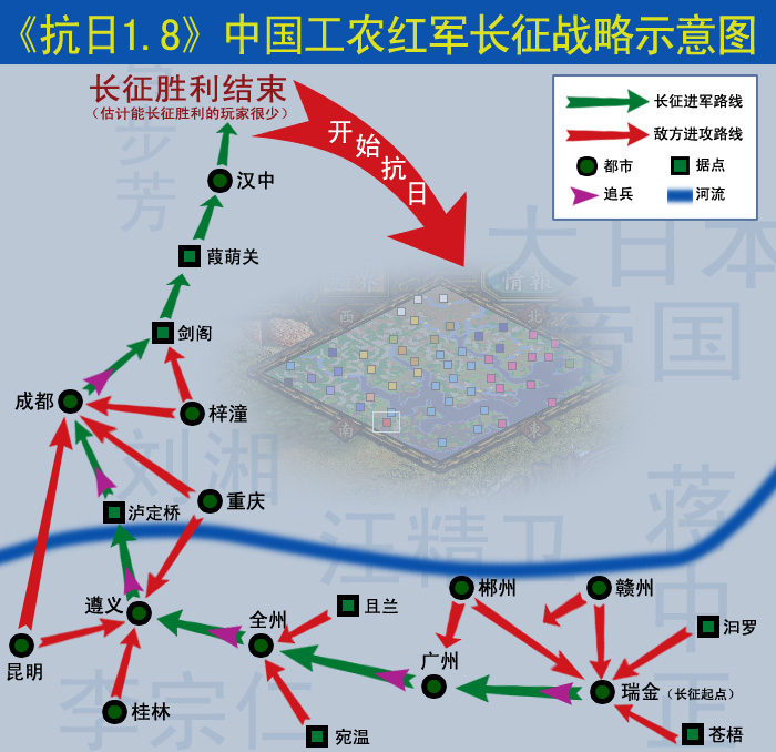 抗日1.8实现了全体武将军装版,并按史实重新调整了整个战略布局,详见图1