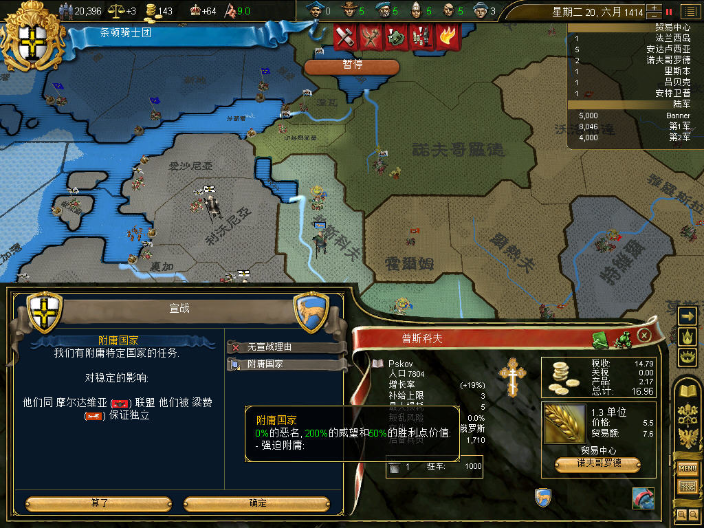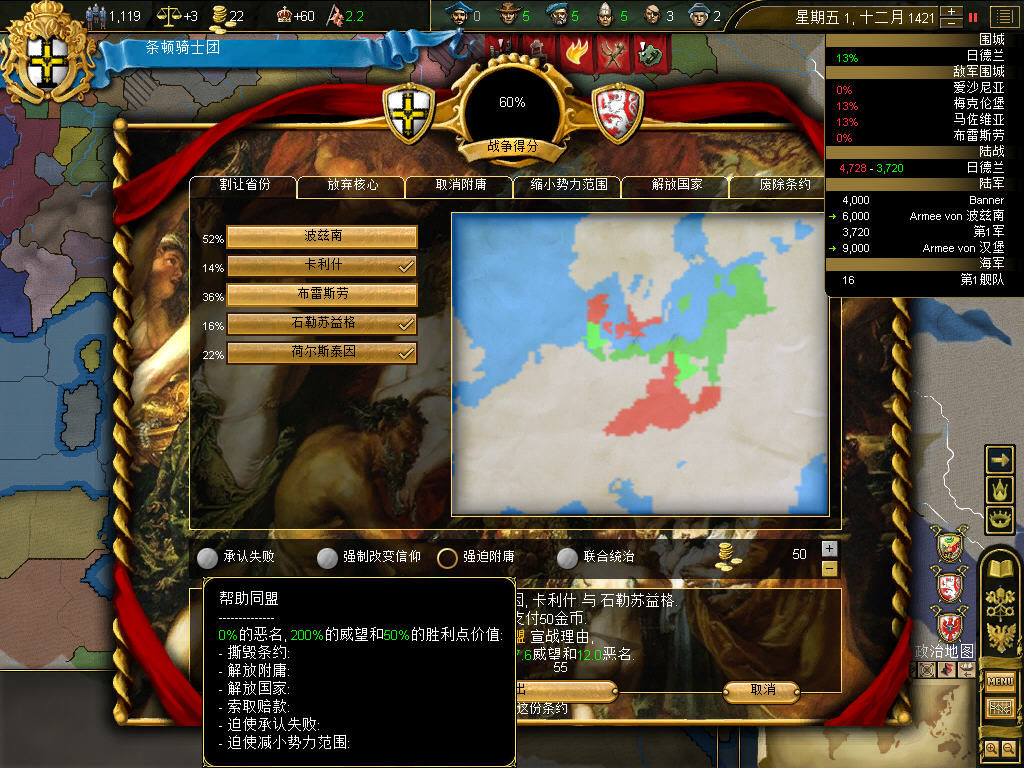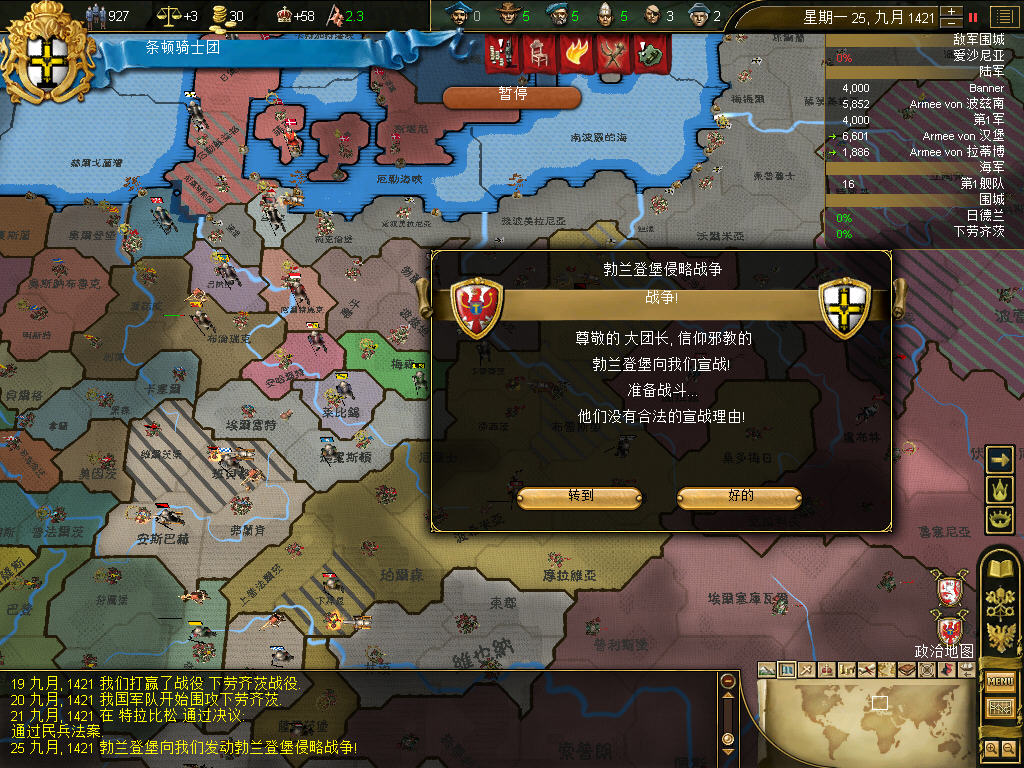 梅克伦堡崩溃,投入了大团长的怀抱,只是爱国者功成身退消失了,比较遗憾