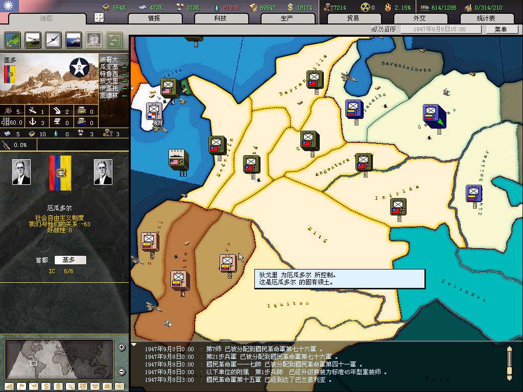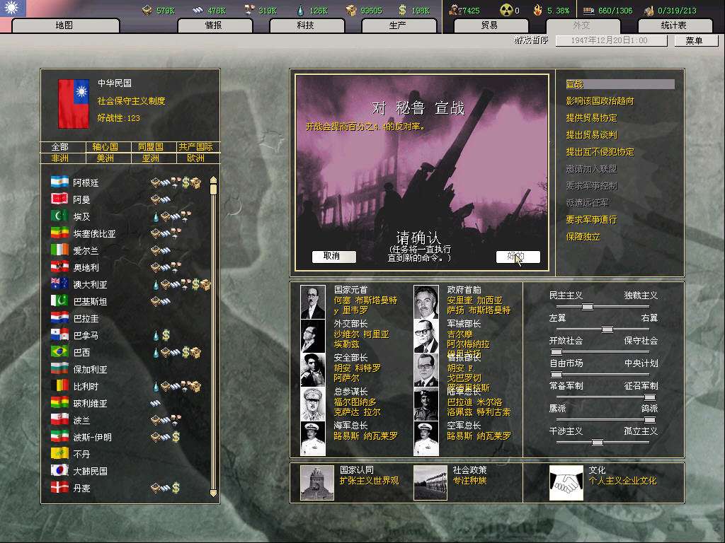 继续宣秘鲁,基本是目前最后一个宣战的美洲国家,剩下的国家都大片靠着海,容易被盟友抢地,最关键宣多了国家好战太高,以后退盟后被美帝宣的概率会变大