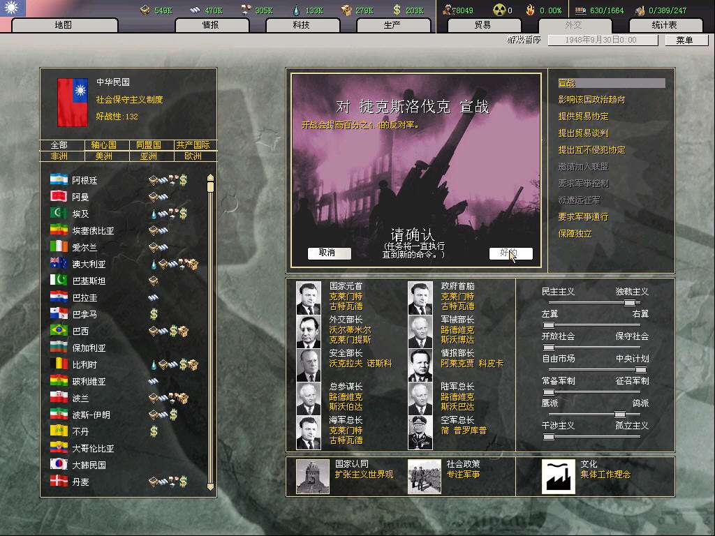 帝国未来最重要的石油供给国大哥伦比亚成立了(这个国家是小黑人国家,我自己给它加了内阁和将领)