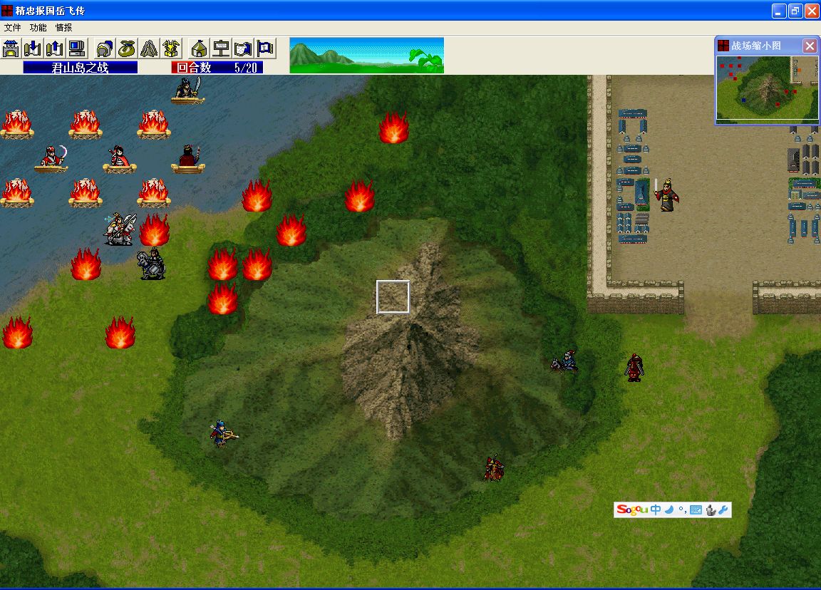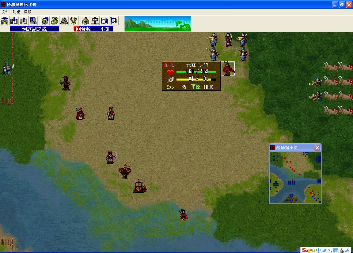 2.第二回合要把左上营1步兵和两弓兵杀了并触发岳飞特技。第三回合岳飞到山顶吸引敌人来打。左右两拨要各有一人到下面帮忙杀弓骑兵。