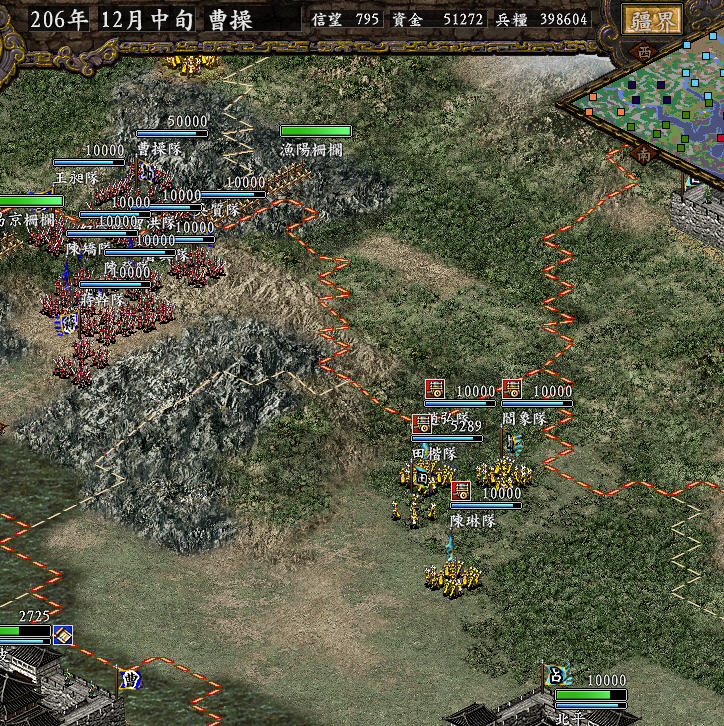 说得好,我是等联盟瓦解后才北上的。另外在北上时,我在小沛留了30万兵。我只动用了15万兵北上的。小沛的大量兵力,电脑是不会进攻的。但是等我把小沛部队也拿到南皮后,小沛就危险了。
