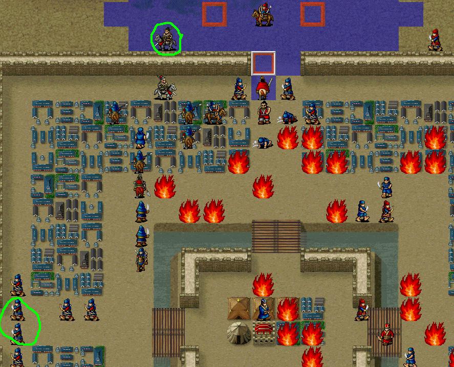 本关倒是无所谓了,曹操助攻总共就18点经验,3个小补给而已。至于经验损失,最划算的弓骑兵那损失上限是75,骑兵10回合被献帝小兵干掉一个,损失不到30。至于3个主将,徐晃实在太猛,sl格挡就能累死;李郭打骑兵一下18、19换4经验,相当于1豆换不到7铠甲,不算很值。而且我把献帝引到了“不动bug”位,这样解放出3个人手轮番在优势地形扛弓骑,轮着进上边兵营补血。如果调剂好,这关还可以再减少4个豆的消耗。