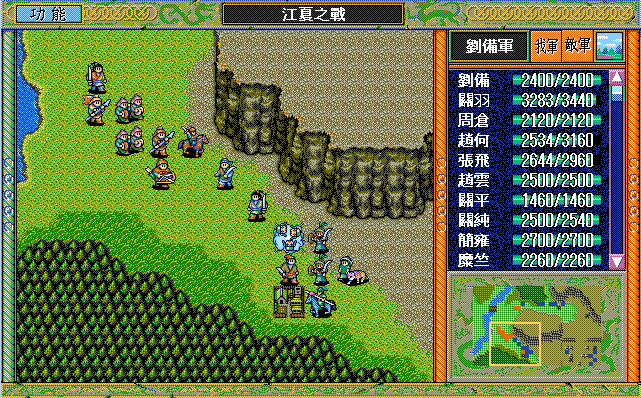 我 周仓左上攻击消灭弓兵1,关平右上激励刘辟,糜竺右激励、赵云左上援助关平,赵何下一,关纯右下、简雍左援助赵何,关羽左下牵制徐晃(失败),刘备右二上二激励自己;