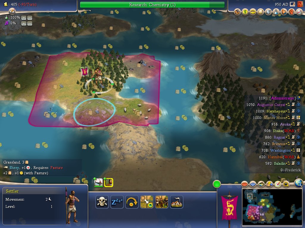 这个难度下,独宗儒教什么的就别想了,还是见招拆招随机应变吧~我尝试了这个图的开局,青铜那个蘑菇没抢到,象教主这样抢先扩张两城也比较有难度,时间很紧张的~