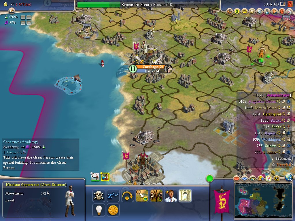 但是首都的科技总还是有保证,可以考虑神宇出神学,这样可以有基督教,也能有神权政体,所有国教城市单位经验+2。