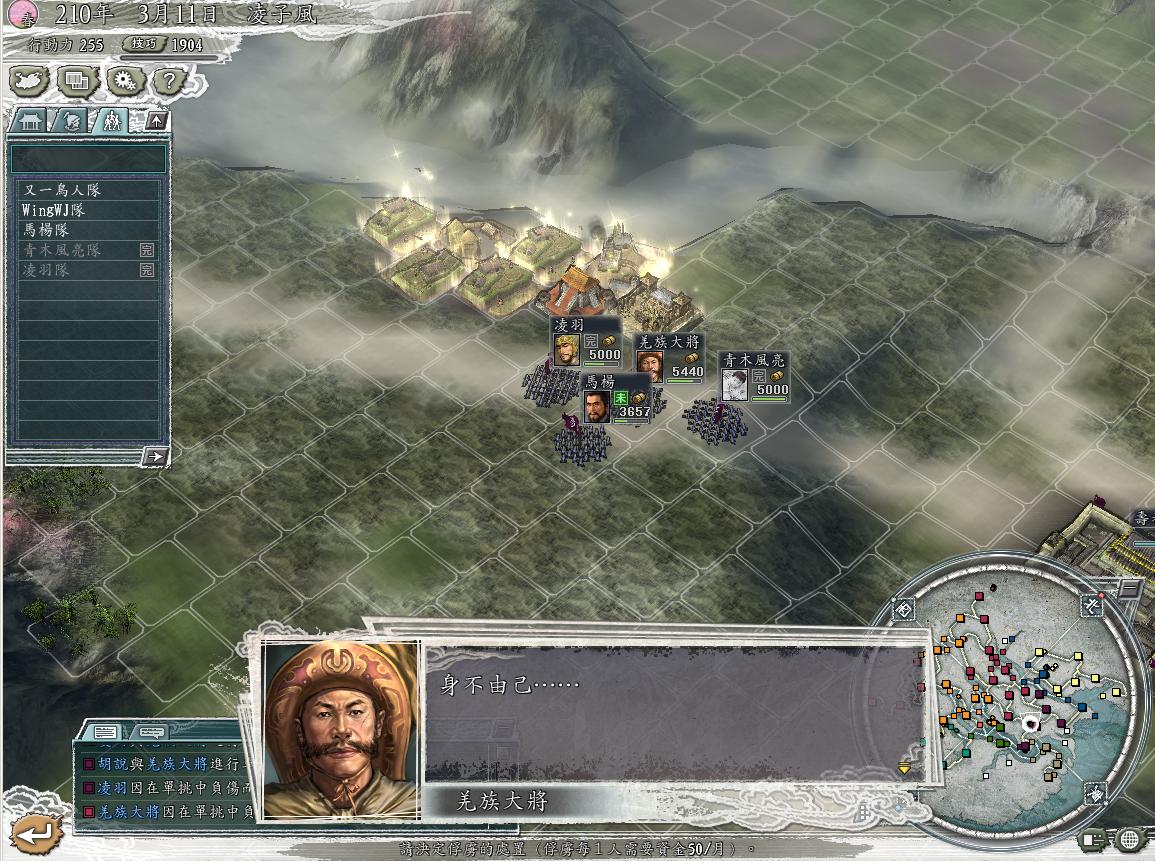 仔细盘点敌军进犯之敌人.靠!还有个7百多人的MM冲车队 而且还带着个俘虏来...此俘虏是刘猿猴军的英雄刘备,看忠诚度已经掉到93了.