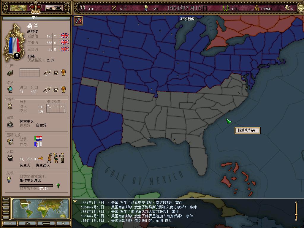 目前有两点郁闷...长期沉迷自由主义,工厂升级无望;俄罗斯的阿拉斯加...垂涎中,不知能否拿下,类似的还有南非的主流人口地区...