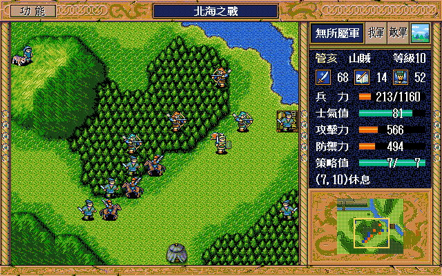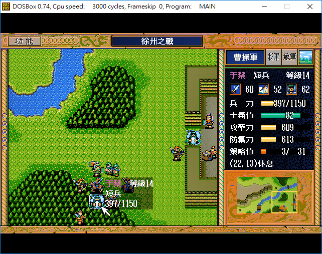 採用GB4,隨機數、天氣自選、兵力,士氣恢復最小、攻擊性,輔助性策略自選、反擊自選