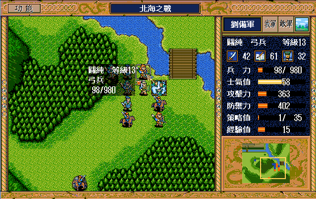 我 趙右攻騎兵3,劉右焦熱(成功) 張上攻滅步兵3,關上攻 純右射滅弓兵3,簡右1上2射 藩右上攻滅騎兵2