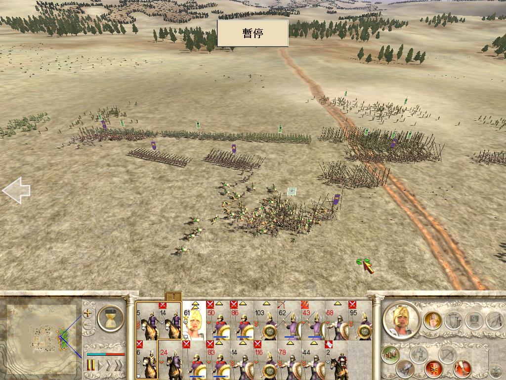 开始交战后,我军中路和右翼的步兵方阵成功抵挡住敌人的步兵方阵和重骑兵,而在左翼,我军近卫步兵投掷的标枪对装备轻型护甲的轻骑兵造成了较大伤害,再加上我军轻骑兵的侧翼包抄,很快就击溃了敌军2队巴卡尼亚轻骑兵